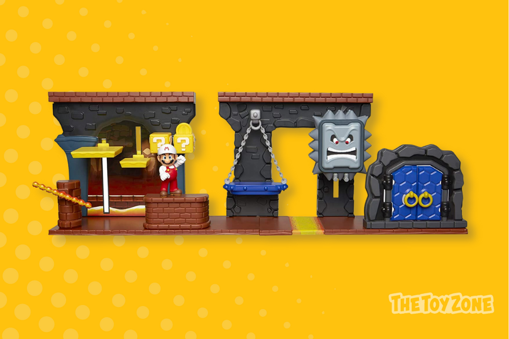 For a more budget-friendly option that’s still a blast to play with, check out this Bowser Vs. Mario Diorama Set. This set has three figures: Bowser and Mario and a Bob-omb figure to add another layer to play scenarios. Kids can go out staging boss battles with these, as they are highly durable and have multiple points of articulation.