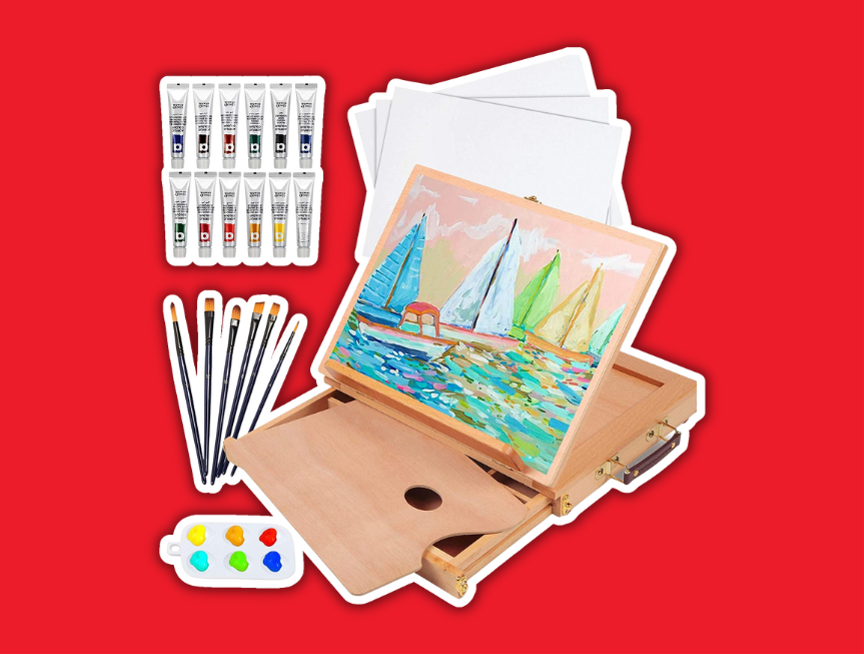 Acrylic paints are a great stepping stone towards oil painting, as they allow kids to learn the techniques without all the complications and chemicals required for oil paints. Plus, the handy box and easel gadget are perfect for painting on the go!